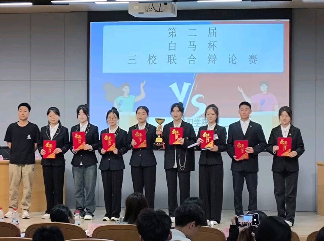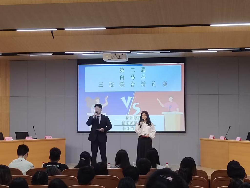为了丰富校园文化,提升口语与表达能力,陶冶学生情操,2024年5月25日下午,大数据与人工智能学院演讲与口才协会在太阳成集团tyc33455cc图书馆101室举办了第二届“白马杯”三校联合辩论赛。参加本次联合辩论赛的是来自太阳成集团tyc33455cc、信阳师范大学和信阳农林学院的辩论队。大数据与人工智能学院演讲与口才协会指导老师晏祥、信阳农林学院大学生辩论社指导老师方志宏、信阳师范大学大学生辩论社2020届社长王宇、还有来自三所院校的辩轮社团的优秀学生干部担任评委。