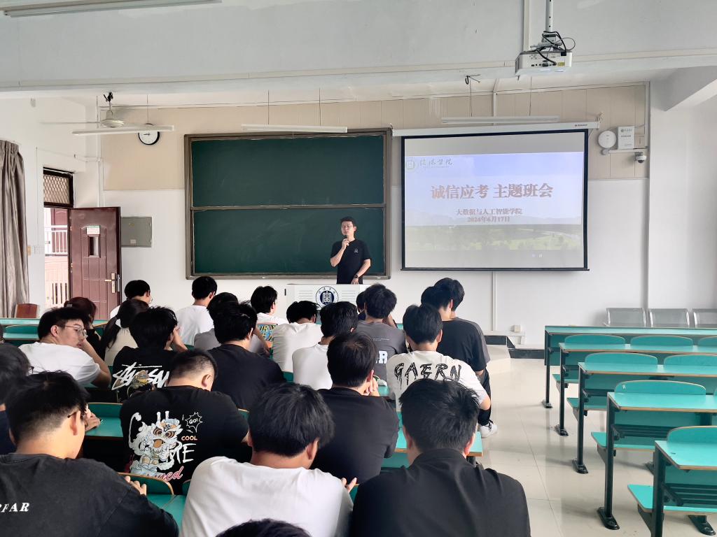 临近期末考试,为进一步加强学风建设,严肃考风考纪、培养学生的诚信品德,营造公平、公正、诚信的考试氛围。6月17日-19日,大数据与人工智能学院在全院范围内召开了诚信考试教育主题班会。