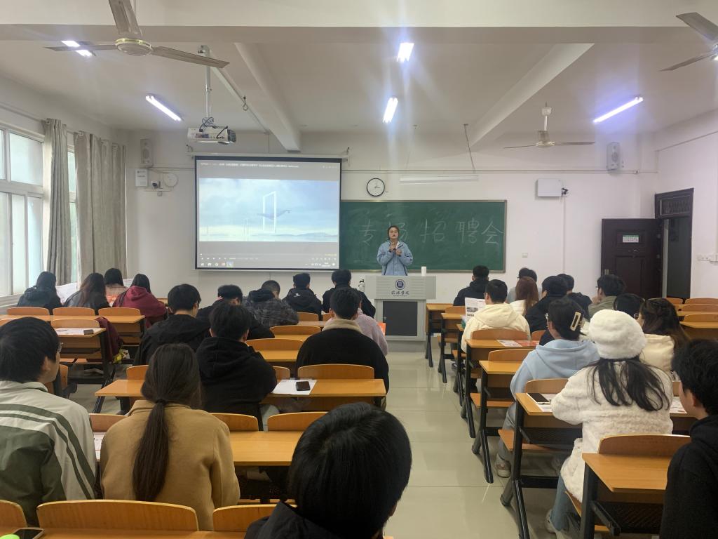 招聘会上,姜经理详细介绍了公司的发展历程、服务产品、合作案例以及招聘岗位信息。同时,她与同学们也分享了往届毕业生入职公司的成长经历,这也为同学们描绘了广阔的发展前景。招聘会后,同学们根据自己所学专业,对工作内容、招聘流程、薪资待遇等重点关注的方面进行了提问。