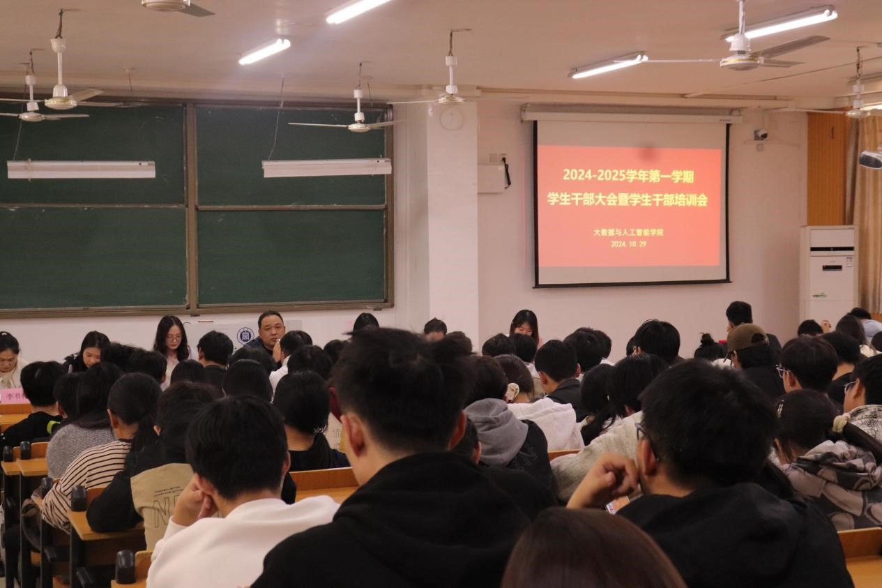 为提高我院学生干部的综合素质,培养学生干部自愿服务、吃苦耐劳的优秀品质,10月29日下午,大数据与人工智能学院在人文楼108教室举办了2024-2025学年第一学期学生干部大会暨学生干部培训会。我院2024级全体学生干部参加了此次会议,会议由学工干事鄢杰主持。
