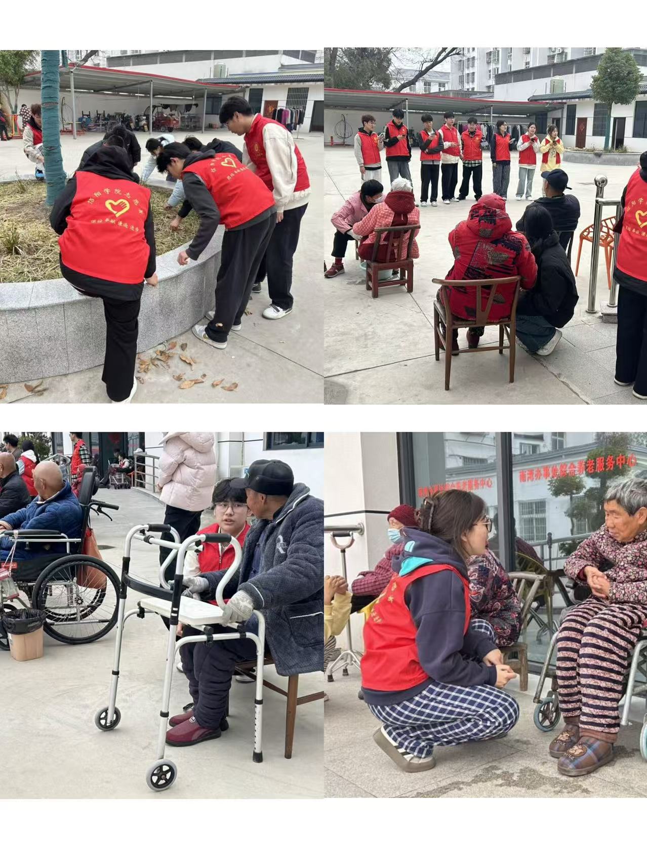 活动当天,学院的志愿者们首先打扫了庭院的卫生、擦拭走廊扶手与窗户。接着为老人们献上了精心准备的节目,一首首经典老歌唤起了老人们的青春回忆,一支支欢快的舞蹈为老人们带来了欢声笑语。最后志愿者们围坐在老人身边,倾听老人们讲述过去的故事,分享着彼此的生活经历。通过互动,志愿者们不仅增进了与老人们之间的友谊,还让他们感受到了社会的关爱和温暖。老人们纷纷表示,希望以后还能有更多这样的活动,让他们能够与社会保持联系,享受更多的欢乐和幸福。