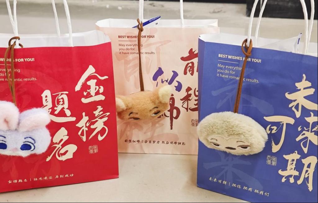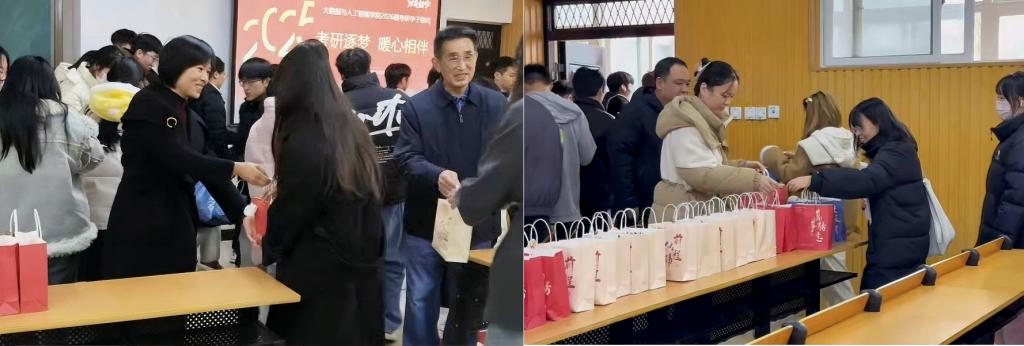 活动最后,学院领导为考研学生送上精心准备的“金榜题名”暖心礼包,礼包中包含寓意“牛”转乾坤的牛奶、象征心想事“橙”的橙子,代表“学业旺旺”的饼干以及传递“温暖相伴”关怀的暖贴和挂件。现场学子纷纷拍照打卡,表示必将带着学院的关怀与期望,坚定信念、全力冲刺,以优异成绩回报母校。