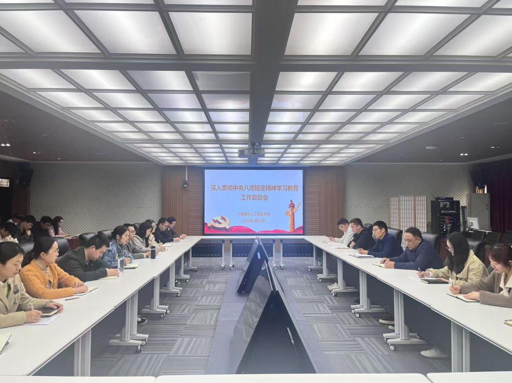 2025年3月27日,大数据与人工智能学院召开深入贯彻中央八项规定精神学习教育工作启动会,全面部署落实中央、省委关于作风建设的最新要求,推动全面从严治党向基层延伸。学院党总支书记郭二军、党总支各委员、各支部书记,全体教工党员及学生党员代表参会,会议由党总支书记郭二军主持。