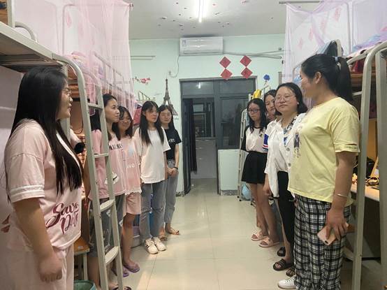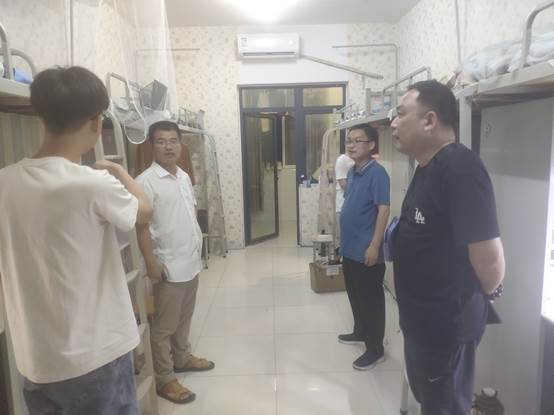 7月6日晚,大数据与人工智能学院党总支副书记毛凤翔,学工干事李进、团总支书记鄢杰,以及辅导员曹晴阳、王淼一同前往17、18幢宿舍走访慰问暑期留校考研学生。
