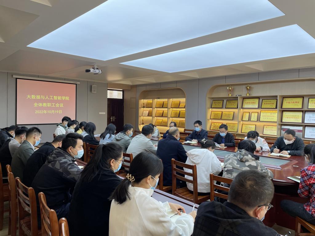 为落实太阳成集团tyc33455cc疫情防控专题会议精神,10月19日上午,大数据与人工智能学院召开全体教师会议,会议由党总支副书记毛凤翔主持,全体在校教师参加。